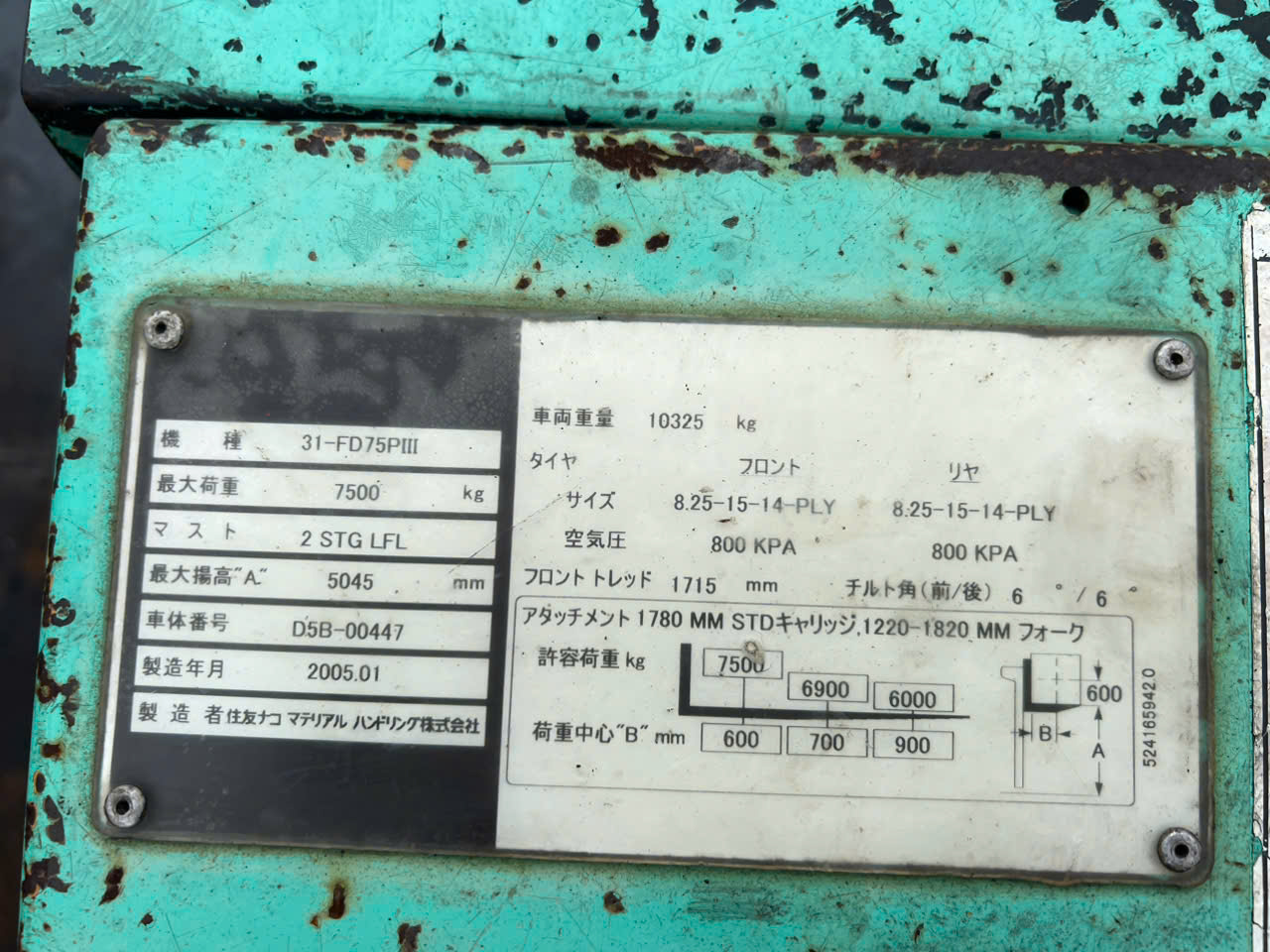 Xe nâng dầu bãi Nhật SUMITOMO FD75, năm 2005